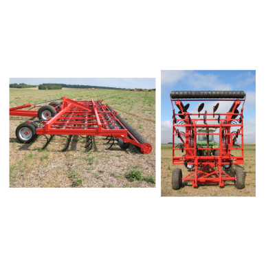 • Déchaumeur à dents semi-porté de 8 à 12 mètres de largeurs repliable en 3 m