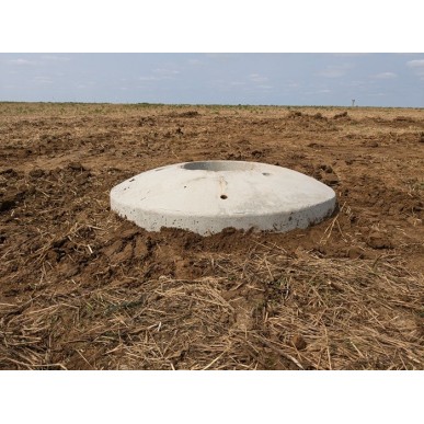 Nous avons donc réfléchi à une solution et créé un bouclier en béton armé dénommé « Bouclhydrant » (système breveté) qui protège l’hydrant si un tracteur roule dessus, dévie les outils qui pourraient l’accrocher (dans la limite du raisonnable !), dévie les barres de coupe des moissonneuses batteuses, etc…